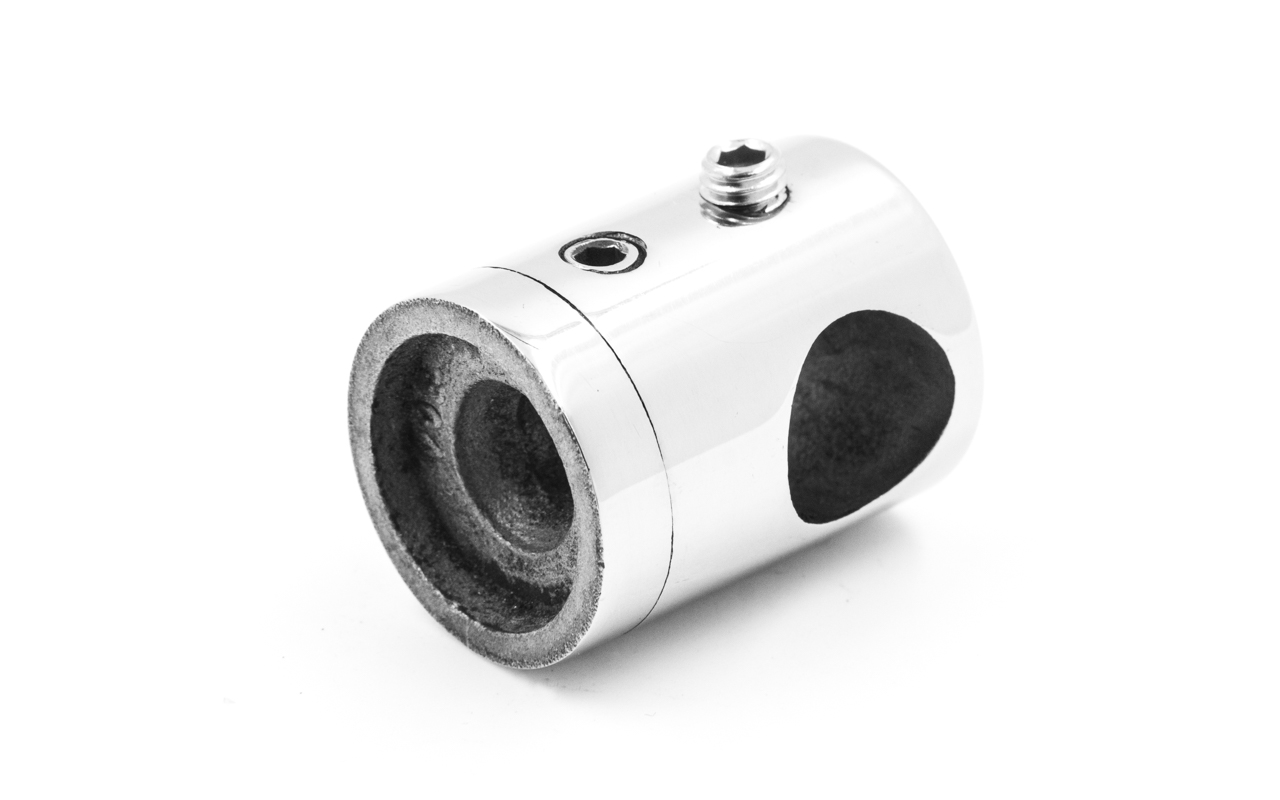 Деталь предназначена для установки ригеля Ø12 мм на плоскую стойку под прямым и любым другим углом, поэтому подходит для монтажа внутреннего заполнения между стойками как на лестничных маршах, так и на прямых участках ограждений. Устанавливается сваркой или ручной сборкой. Марка стали AISI 304 позволяет использование держатель как во внутренних, так и уличных ограждениях.