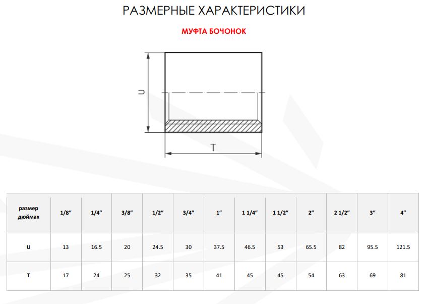 Муфта "бочонок" представляет собой короткий отрезок трубы с нарезанной сплошной внутренней резьбой. Служит для соединения водогазопроводных труб с применением уплотнителя, в системах отопления, водопровода, газопровода и других системах, работающих в условиях неагрессивных сред (вода, насыщенный водяной пар, горючий газ и др.).