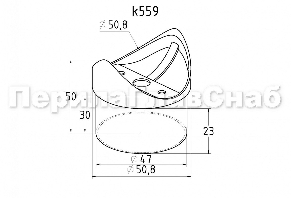 Седловина крепится на трубу Ø50.8 под поручень Ø50.8. Очень прочный наконечник. Одно из преимуществ данной модели в том. что она ровно обхватывают поручень, порядка 50%. Отлично подходит под отбойники или другие ограждения с повышенными нагрузками.