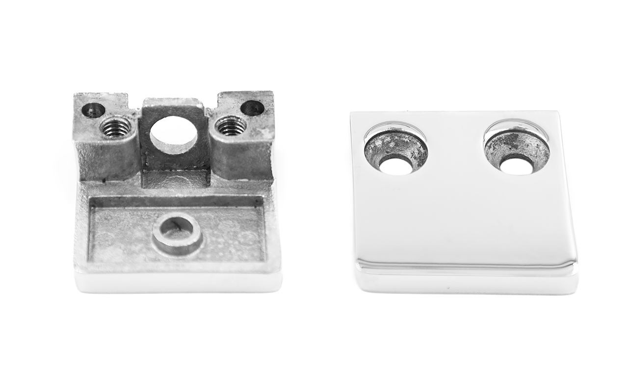 Стеклодержатель литой квадратный, на плоскость, под стекло 8.0 мм, AISI 304, GRIT 600, зеркальный